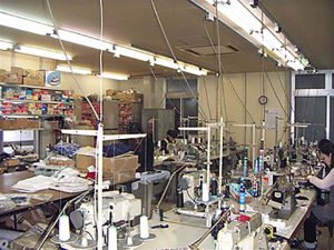 一つは実際に商品の生産を執り行う縫製工場、もう一つが縫製工程途中、もしくは縫製が仕上がった製品を加工する二次加工場、そしてもう一つがサンプリングを行うサンプル工場となります。